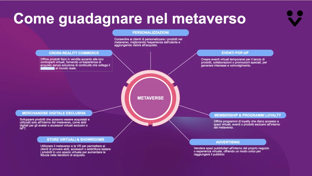 The sale of exclusive digital merchandise, such as avatar clothing, game skins, accessories, or NFTs, represents an excellent monetization opportunity in the metaverse. With a relatively low production cost and the ability to attract collectors and fans, this strategy can generate new revenue streams. NFTs, in particular, allow users to hold a single digital item with potential for revaluation over time, which can lead to a vibrant and profitable secondary market.